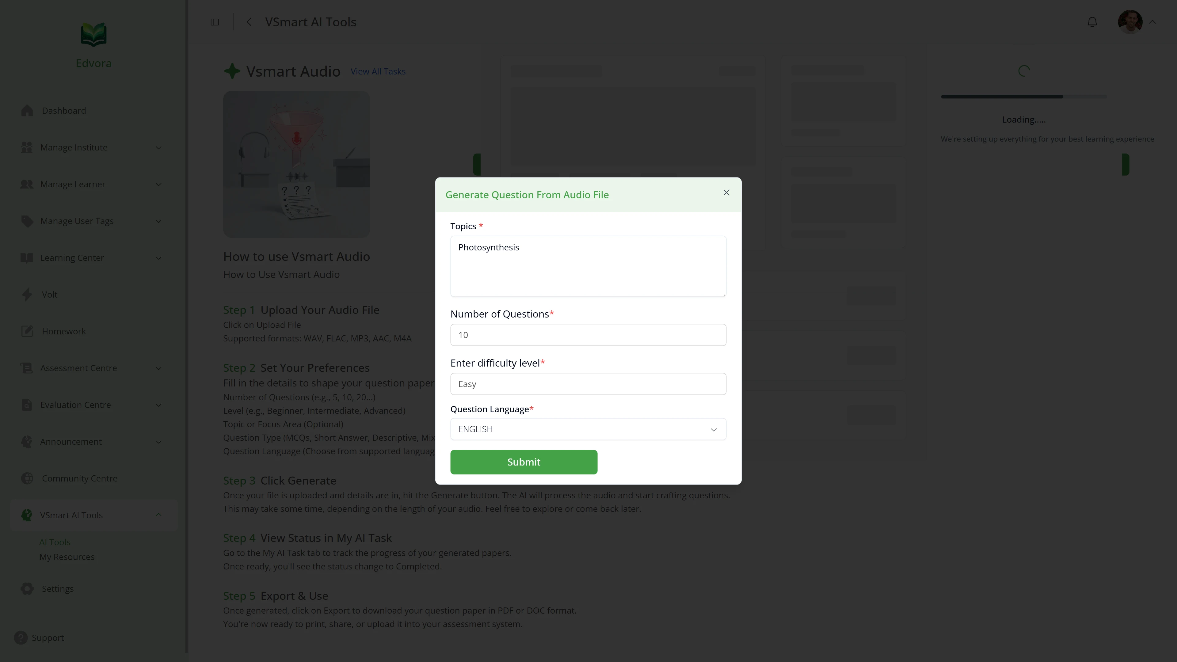 NEP requires diverse testing methodologies. Vacademy automatically generates objective questions, subjective evaluations, right out of text and audio directly aligned with course outcomes.